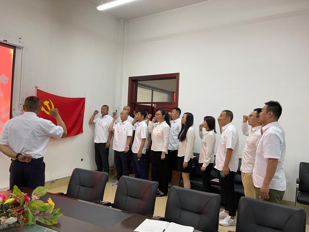 随后,在魏跃臣同志的带领下,全体党员高举右拳、精神饱满、铿锵有力地面对着党旗宣誓。通过重温入党誓词,深刻体会到作为党员的责任、使命和荣耀,不忘初心、牢记使命。