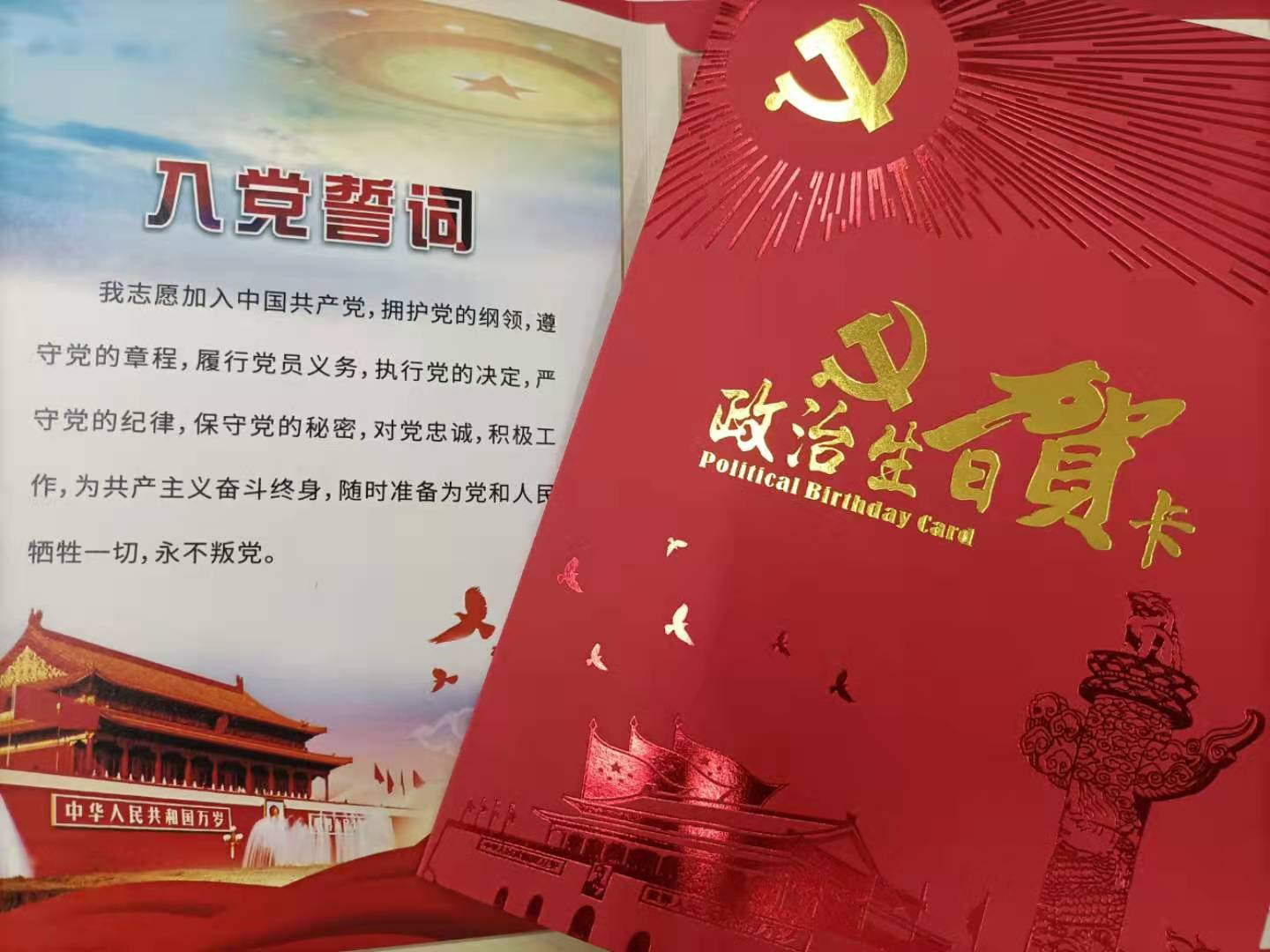 “今天是你的政治生日,党组织向你表示热烈祝贺,希望你在今后的生活和工作中,不忘初心、牢记使命,时刻牢记党的宗旨、坚定理想信念、永葆共产党员先进性……”。体育党支部书记张宇同志为党员送上生日贺卡和祝福,充分体现党组织对党员政治上的关心、精神上的鼓励和未来的期盼,让党员时刻感受到党组织的关心关爱。