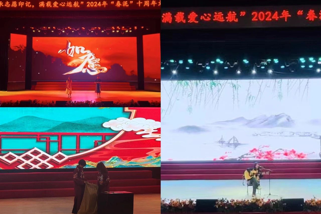 一份愿望,一份期盼。一声祈愿,一份夙愿。《如愿》演唱者的歌声如春风般轻暖和煦又澄澈空灵,在场观众的心灵仿佛被浸泡在温泉里,毫无防备地卸下坚硬的伪装,轻轻抚平伤痛的褶皱,去回顾、去珍惜、去向往。一捧一逗,演绎百态人生;一说一唱,道尽世间万象。一袭大褂立于台间,语惊四座,谈笑四方。相声《你的志愿,我的志愿好像不一样》充分展现出,我们虽做着不同的志愿,但我们有着共同的初衷,同一个愿景,共赴同一场盛宴。乌兰巴托是心灵的港湾,让疲倦的灵魂得以停泊,享受片刻的安宁,随着吉他的独特音调响起,弹唱者那动听的歌喉赋予《乌兰巴托的夜》展现出它独特的魅力,静谧中弥漫着温馨的气息。在“春泥”历程回顾中,李雯皙队长的精彩讲述,让我们了解到春泥志愿服务队这个大家庭十年的历程。志愿者们始终保持向社会传递温暖的初心,打造有态度、有温度、有深度的特色志愿服务,将爱播撒向社会。那些无私奉献、默默坚守的温暖瞬间,是“春泥”志愿服务队的缩影,更是无数志愿服务者的身影。