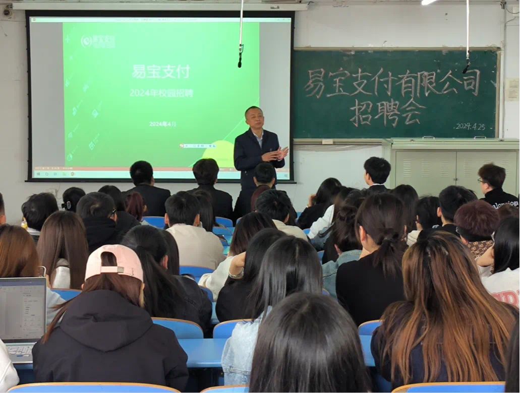 为了给即将毕业走上工作岗位的学生给予指导,拓宽毕业生就业市场,同时进一步了解易宝支付的薪资范围、工作职责等信息,2024年4月25日卫生管理学院在教学楼阶梯二教室举办易宝支付有限公司招聘会,本次招聘会由该公司招聘负责人刘刚主讲,实习就业科科长刘磊,21级辅导员李晓晨及21届全体学生参加。