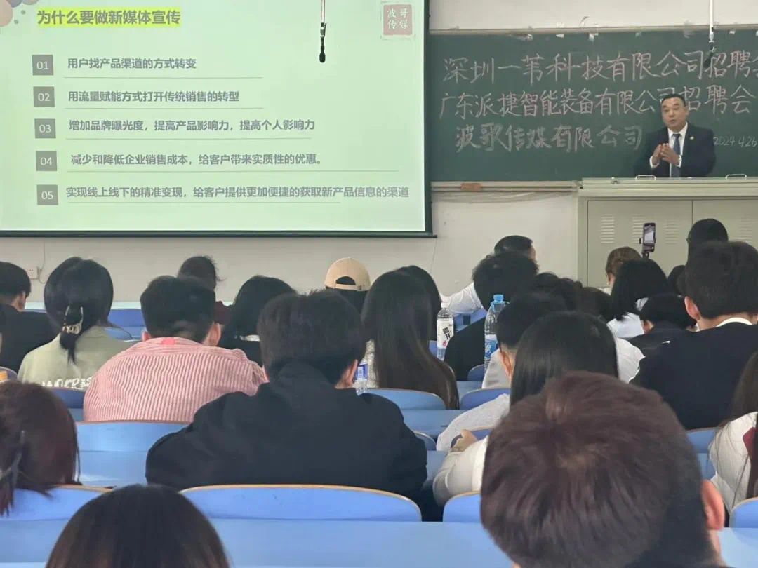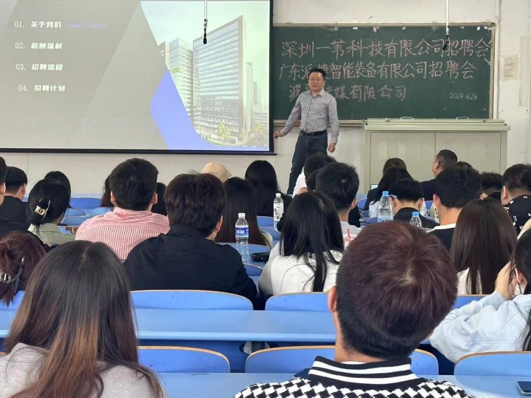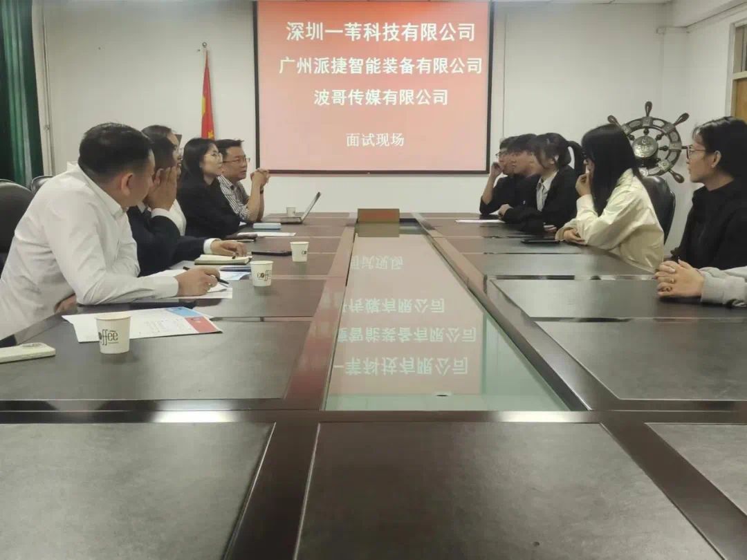 充分展现深圳一苇科技业有限公司有限公司,广东派捷智能装备有限公司,波歌传媒有限公司对人才引进的魄力诚意和求贤若渴的温度热情。会议最后,各公司负责人为同学们进行答疑。招聘会结束后,同学们有序提交简历,并在综合楼三楼会议室参加面试。