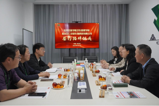 2023年6月6日上午,牡丹江医学院卫生管理学院与黑龙江仁合堂生物科技有限公司校企合作签约授牌仪式在仁合堂集团举行。卫生管理学院院长师东菊、副院长郭继民、汪海波等,黑龙江仁合堂生物科技集团副总裁李伟、格锐特总经理李洋、总裁办主任周绪仁共同出席。签约揭牌仪式由集团副总裁、贝比康研究院院长李伟主持。协议围绕坚持“优势互补、互惠共赢、务实合作、协同发展”的合作目标,校企双方决定建立长期的、全面的、深度的战略合作,发挥各自优势,推动高等教育与高新企业的深度融合,促进卫生管理人才高质量的发展。