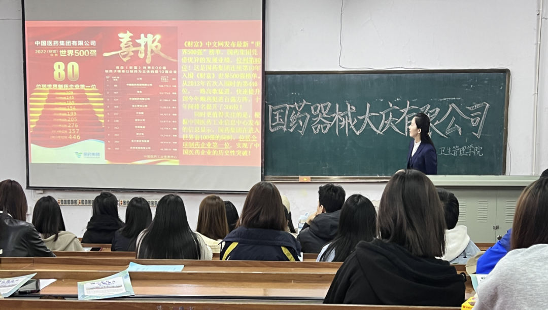 为进一步拓宽实习生实习渠道,畅通人才供需对接渠道,为学生创造多样化的实习机会。为此,卫生管理学院于2023年5月9日12:15在教学楼阶梯一召开“国药器械大庆有限公司”专场招聘会。2020级全体同学参加。