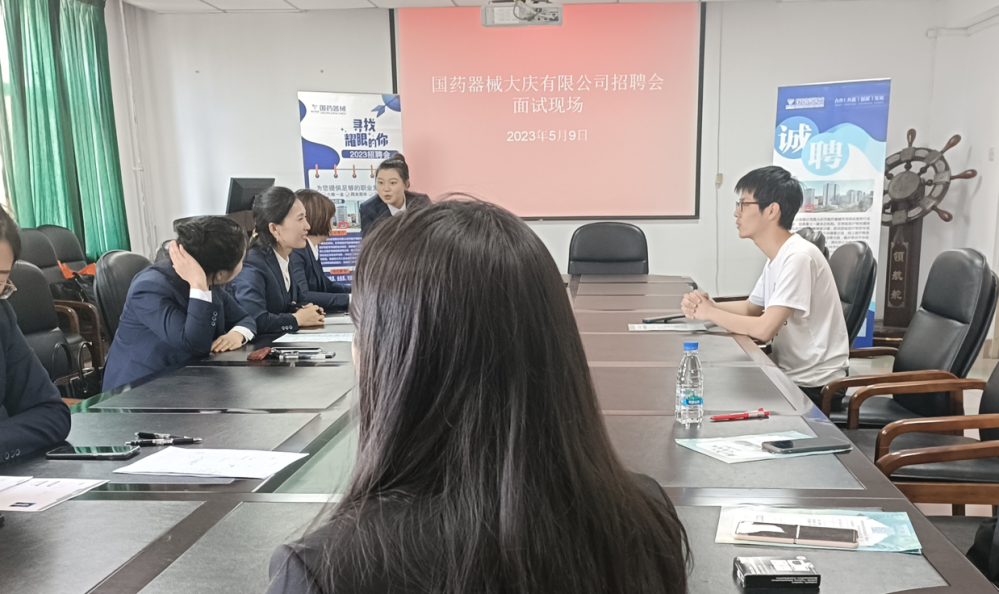 此次活动由实习就业科科长实习刘磊主持,国药器械大庆有限公司人事行政部经理于春燕进行介绍。