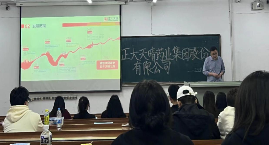 此次活动由实习就业科科长实习刘磊主持,正大天晴药业集团股份有限公司经理谢昊志介绍。