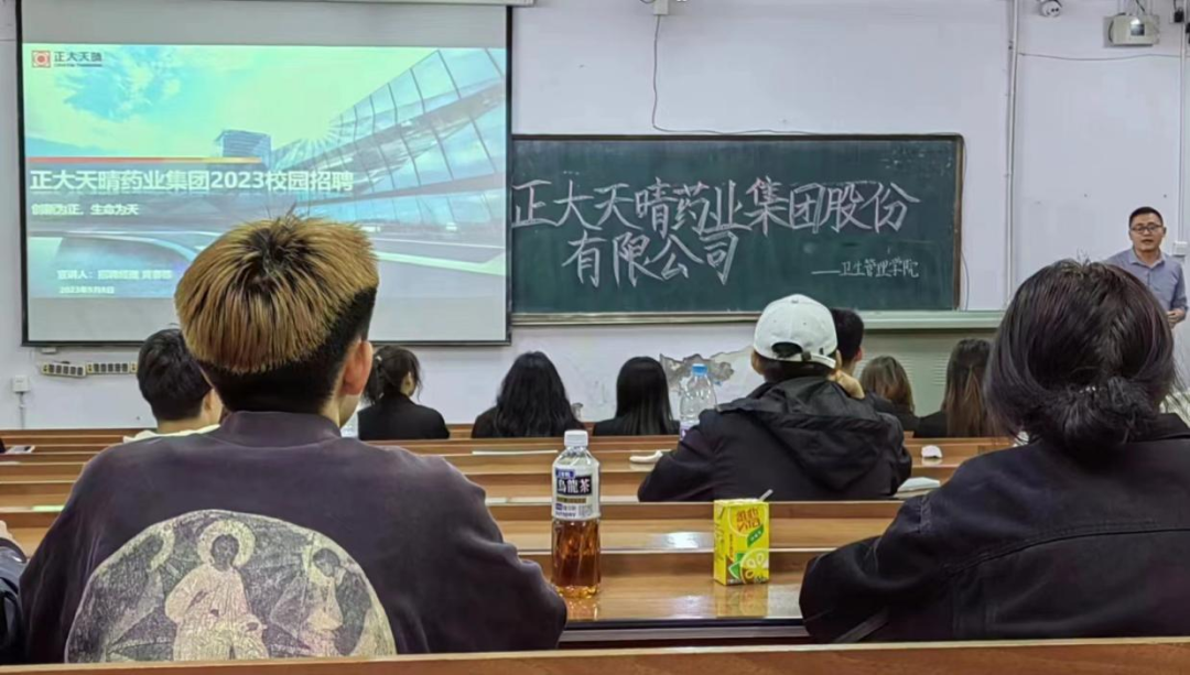 为了给实习就业生提供更优质的就业服务,让同学们了解各行各业的发展前景和招聘需求,同各个企业进行更深入的交流与和合作。为此,卫生管理学院于2023年5月8日18:00在教学楼阶梯一召开“正大天晴药业集团股份有限公司”专场招聘会。2020级全体同学参加。