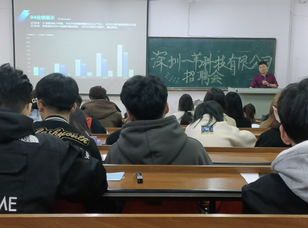会议伊始,实习就业科科长刘磊向同学们简要介绍了其公司,希望同学们要找准自己的定位,从而解决实习和就业问题。随后,吴杰对毕业生就业问题,如何查找和了解各公司,国家重点扶持企业,各企业需求等方面做出详细讲解,让同学们对如今各用人企业单位有了一定的认知。接下来,吴杰从公司发展,公司文化,公司环境,岗位需求,福利待遇等方面进行详细介绍,让同学们对该公司产生了浓厚的兴趣。吴杰对同学们的就业前景做出了专业的分析并呼吁同学们加入企业,为公司注入新鲜血液,与公司共同奋斗。会议最后,他强调针对当前严峻的就业形势, 企业在进行面试时,应聘者应当注意的问题以及心态的重要性。