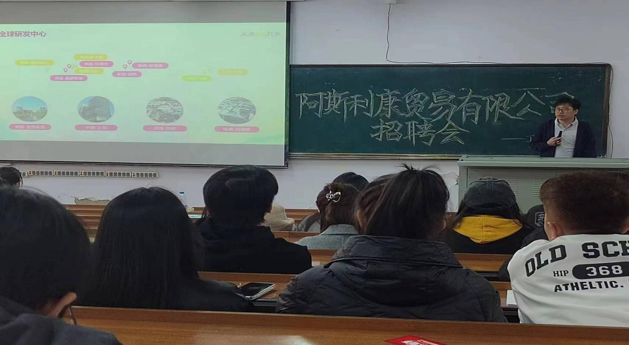 会议伊始,刘磊首先对阿斯利康药业的宣讲表示由衷感谢,并希望同学们积极寻找心仪岗位,与企业展开互动交流,深入了解企业用人需求、员工职业发展和薪资水平等情况。随后,由“阿斯利康贸易有限公司”徐春峰对公司的概况、产业领域、品牌文化多方面进行了详细的介绍,阿斯利康是一家专注于研发、生产和销售处方类药品,以创新为驱动的全球性生物制药企业,该公司为实习生提供系统的培训、有竞争力的薪资和完备的保障福利,有利于同学们全面发展。最后,由“阿斯利康贸易有限公司”宋博伦为同学们解答疑问,让同学们对阿斯利康药业有了进一步的了解,同时期待同学们能为阿斯利康高速发展的业务做贡献。招聘会结束后,同学们有序提交简历于综合楼二楼党员之家参加面试。