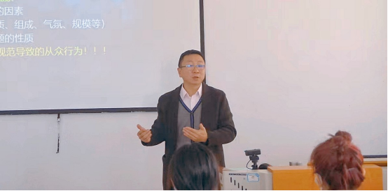 郝俊峰老师在《组织行为学》的讲解中,妙语连珠的语言启发学生思考,将群体行为通过漫画的形式讲解的生动活泼,不仅使课堂氛围活跃,并且使学生清晰地认识到群体行为、从众行为的概念及内涵。