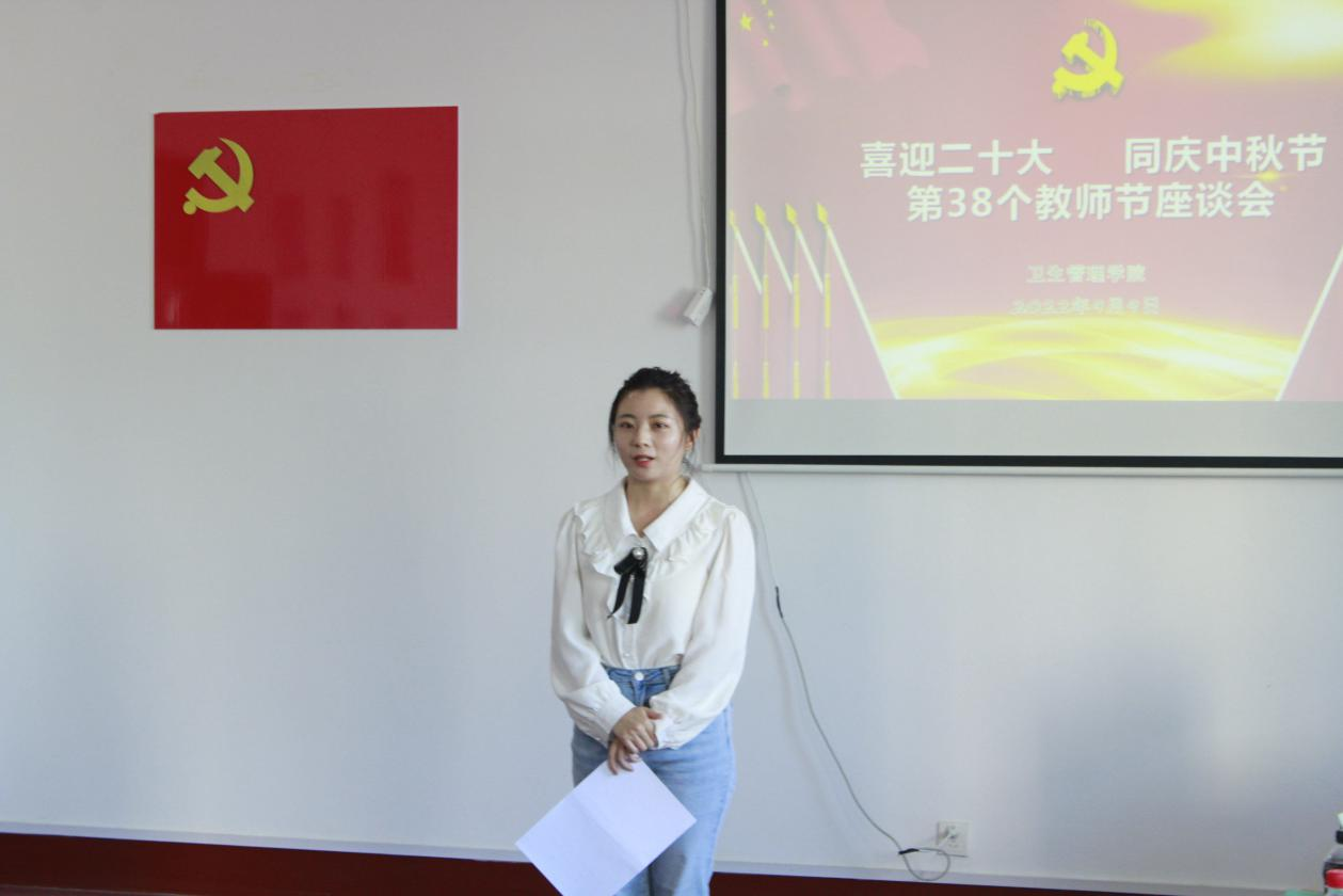 2022年9月9日,卫生管理学院庆祝第38个教师节座谈会在学院党员之家召开。党委书记魏赟鹏、院长师东菊及班子成员、副处级辅导员、20余位教师参加了座谈会,会议由教务科科长周雪主持。