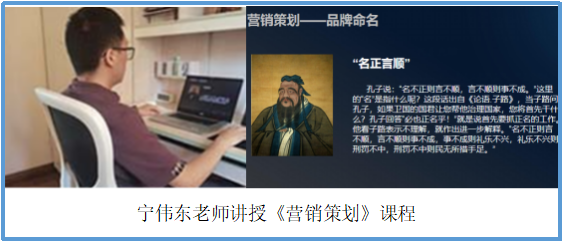 宁伟东老师在讲授《营销策划》品牌命名相关内容时候,运用相关平台模拟企业登记,让同学分小组自由发言讨论,同学们自主选择行业、企业类型,根据课堂所学进行企业品牌命名。教师在授课中不仅传授方法和原则同时让同学们学习相关法律规定。在授课过程中引入儒家经典语句和典故,同时对相关历史人物进行介绍,挖掘中国典籍思政价值,让思政元素有效融入专业课程。