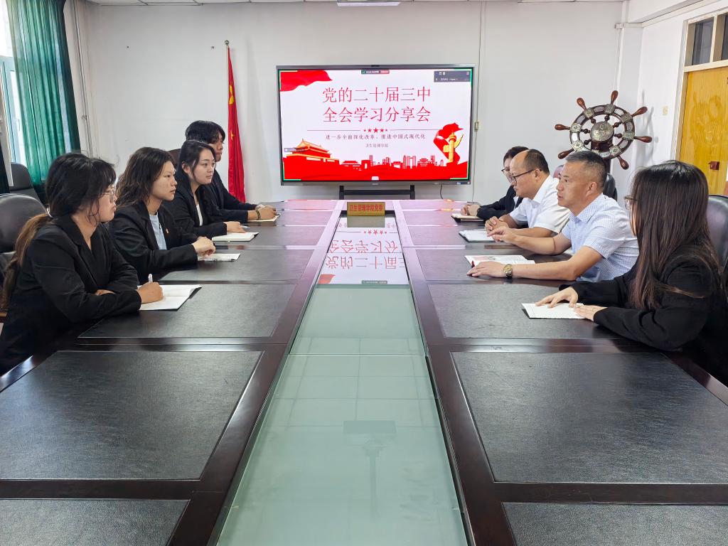 8月23日上午,卫生管理学院理论学习中心组召开专题学习会议,学习了《中国共产党第二十届中央委员会第三次全体会议公报》,学习了《中共中央关于进一步全面深化改革、推进中国式现代化的决定》,会议由学院党委书记魏赟鹏主持,中心组成员及支部书记参加。