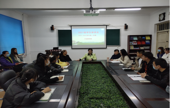 2021年10月27日、28日中午,外语教研部在三楼会议室分别组织召开了20级、21级学生座谈会。来自两个年级约40多名学生代表参加了座谈会,外语教研部主任许丹凌,副主任张淑玲及各教研室主任副主任、教学秘书出席座谈会,并与学生现场交流,会议由外语教研部副主任张淑玲主持。
