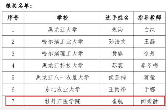 本次大赛采用线上、线下同步的方式举行,口译大赛黑龙江省赛区决赛在黑龙江外国语学院举行,阅读、写作、笔译比赛通过线上进行。在口译大赛中,来自省内30多所高校的38名选手参加了比赛,我校22级生物医学工程专业崔航同学作为非英语专业学生同30多名英语专业学生同台竞技,经过激烈角逐,他以灵活的思辨能力和跨文化交际能力,展现了过硬的英语语言功底,在第一轮英译汉视译比赛中以89.5分,排名第四的优异成绩成功进入第二轮汉译英视译比赛,斩获银奖。在阅读大赛中,刘国岩、吴智慧、曹崊迪三名同学获铜奖;在写作大赛中,刘国岩、吴谦豪、吴智慧三名同学获得铜奖;在笔译大赛中,董一同学获得铜奖;在演讲大赛中,蔡书璇、曹琳迪两名同学获得铜奖。