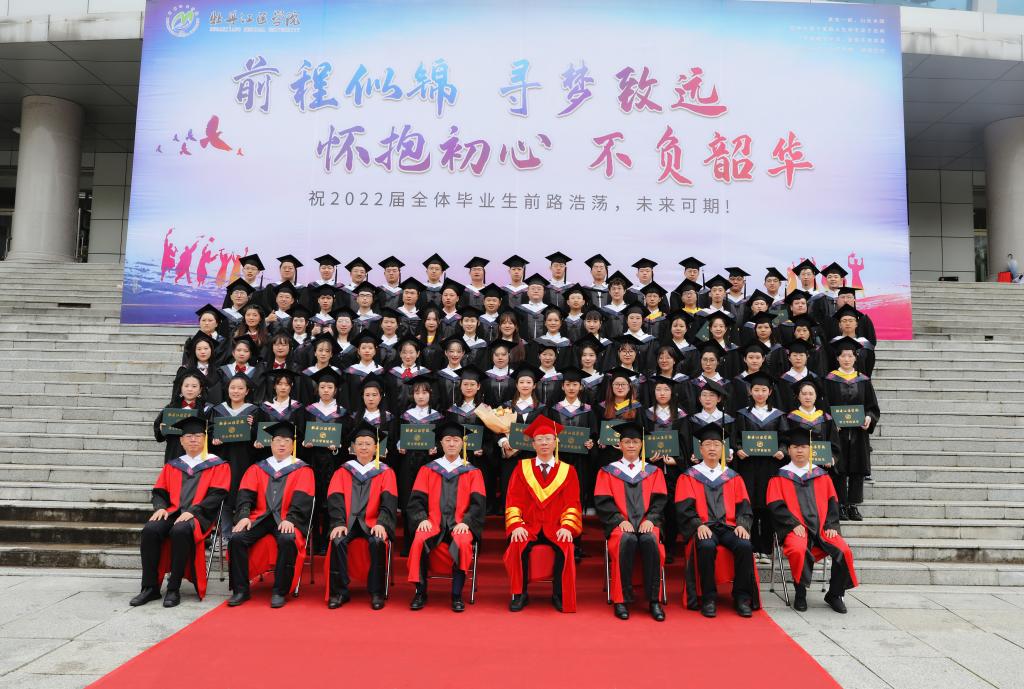 学校党委书记马宏坤为荣获2022届本科优秀毕业生、硕士优秀毕业生代表颁发荣誉奖牌,并合影留念。