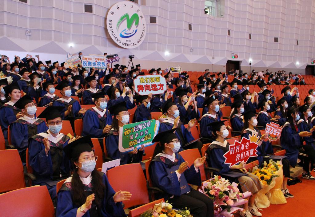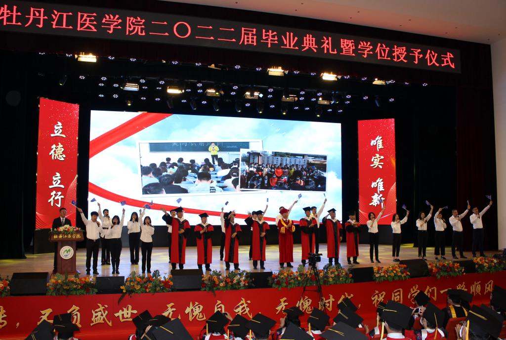 6月17日上午8时30分,牡丹江医学院2022届学生毕业典礼暨学位授予仪式在学校文体馆礼堂隆重举行,典礼采用现场活动与在线直播相结合的方式进行,毕业生们线下线上“齐”聚牡医,校友、毕业生家长通过观看直播共同见证这一难忘时刻。