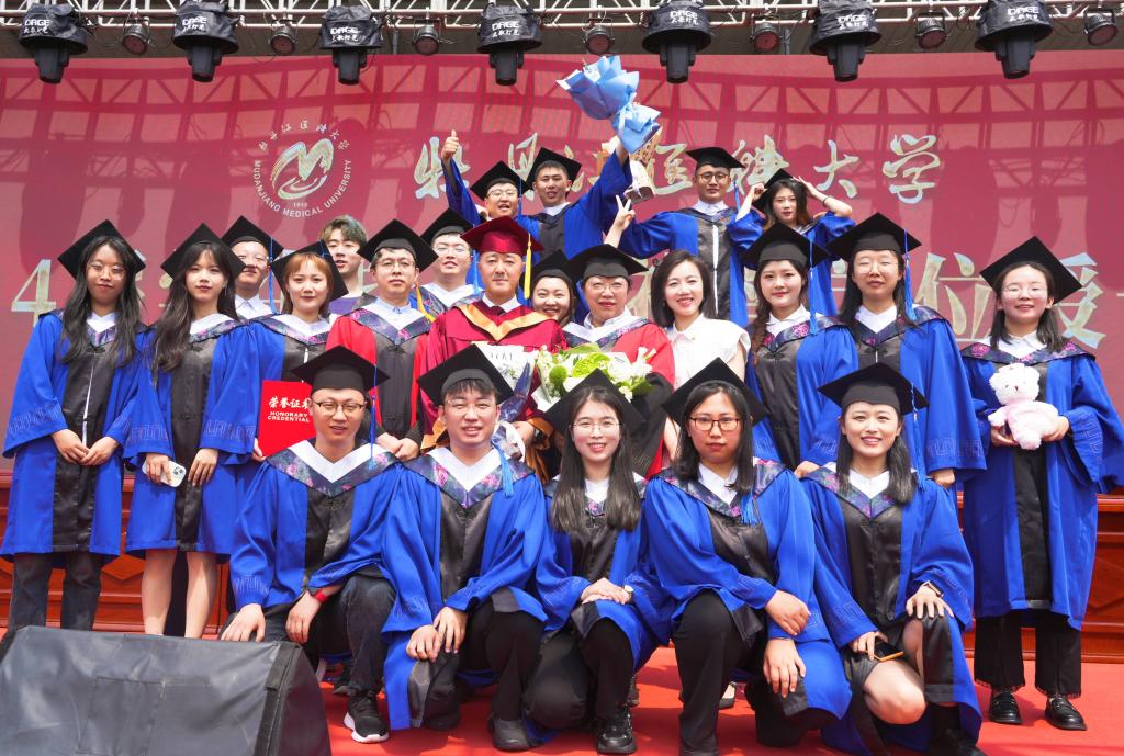 他表示,在同学们进步成长的同时,学校也在向着高水平特色应用型医科大学目标迈进。我们保持和持续推进“风清气正的政治生态”,营造“教书育人的成才环境”,做好“教学科研的历史传承”,传授“创新创业的知识结构”,形成“尊师重教的校园文化”。5月31日,教育部印发《关于同意牡丹江医学院更名为牡丹江医科大学的函》,学校正式更名为牡丹江医科大学,同学们成为牡丹江医科大学第一届毕业生,收获了最值得纪念的大学证书!