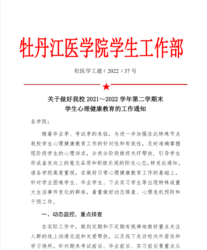关于做好我校2021~2022学年第二学期末学生心理健康教育的工作通知