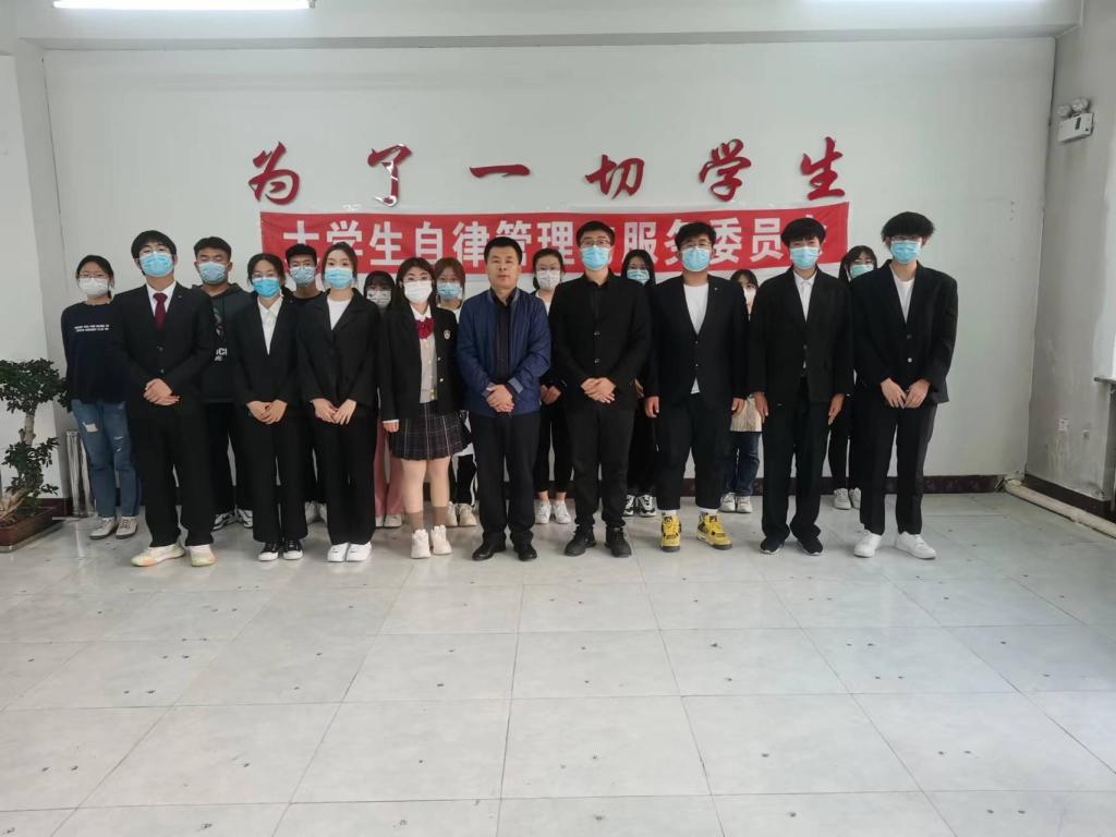 2022年9月30日下午,在学生处216事务大厅举行大学生自律委员会的授牌仪式。出席本次活动的有学生工作部(处)部(处)长王俊林、学生科科长张强以及大学生自律委员会全体学生,会议由学生科科长张强主持。
