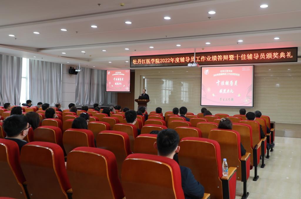 讲述育人故事,展示职业风采。为贯彻落实党的二十大精神,充分展示我校辅导员群体的良好精神风貌,进一步激励辅导员践行为党育人、为国育才的神圣使命,3月21日学校在临床技能中心17楼召开牡丹江医学院2022年辅导员工作业绩答辩暨“十佳辅导员”颁奖典礼。学校党委书记马宏坤、党委副书记张德才出席。学生工作部部长王俊林、教务处处长宋高臣、团委书记王新、招生就业处处长王廷华和各学院书记、院长、学工负责人参会并担任评审专家。