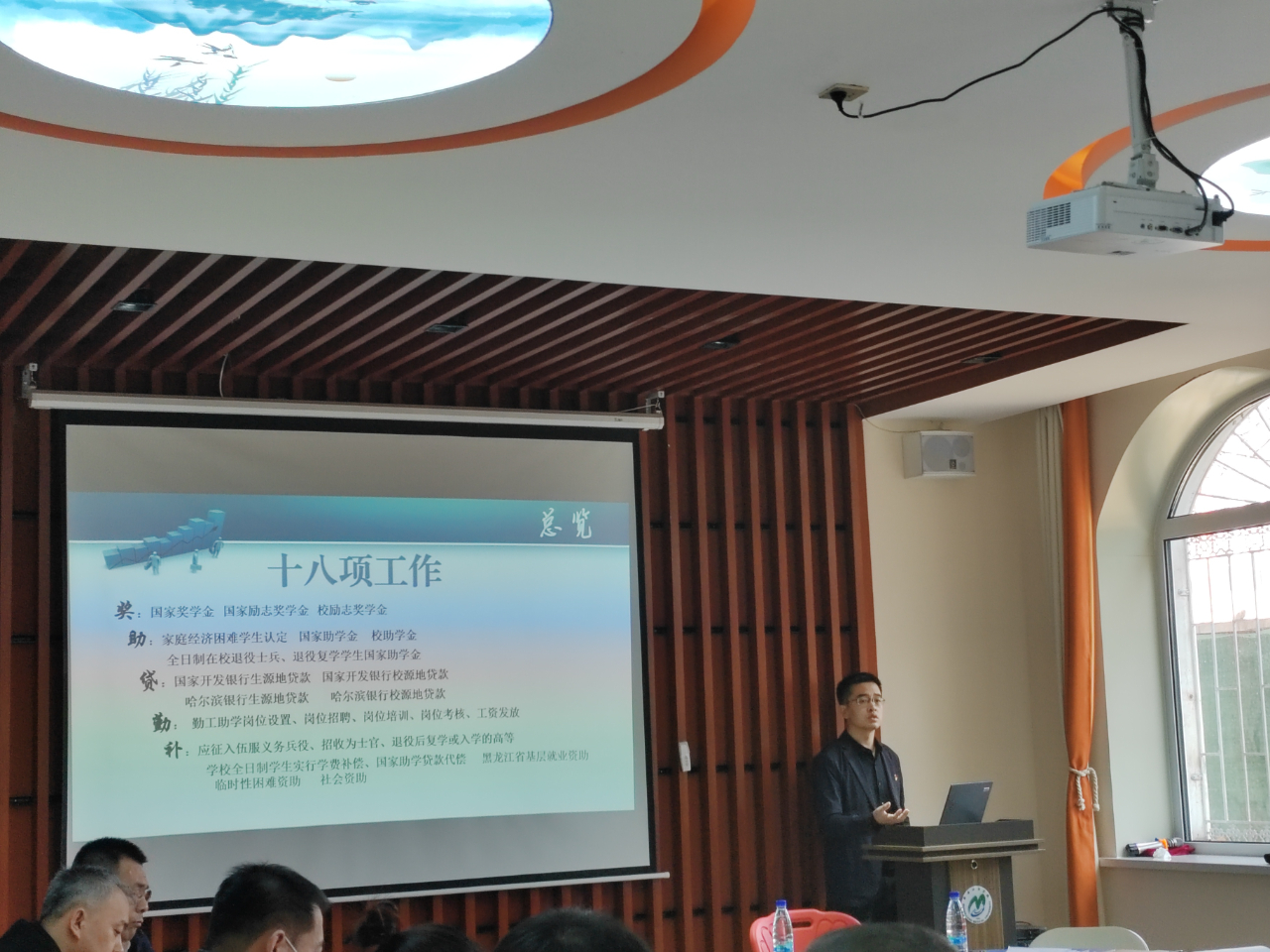 学生资助管理中心副主任孙天超开展了资助工作业务培训,解读最新资助政策和文件精神并解答学院辅导员提问,并将资助工作细化为六大体系进行了系统培训。