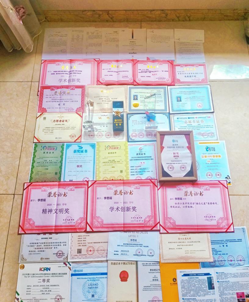 迄今为止,李思瑶所带的多个赛事团队成员累计70余人,覆盖全校临床、麻醉、影像、营销、管理等多个专业,身为队长带领团队在创新领域策划的乡村振兴、智慧医疗等多个项目策划书累计十万余字,所策划项目在2021-2023两年内共斩获国家级、省级创新赛事奖项15项,共获各级各类奖项30余项。