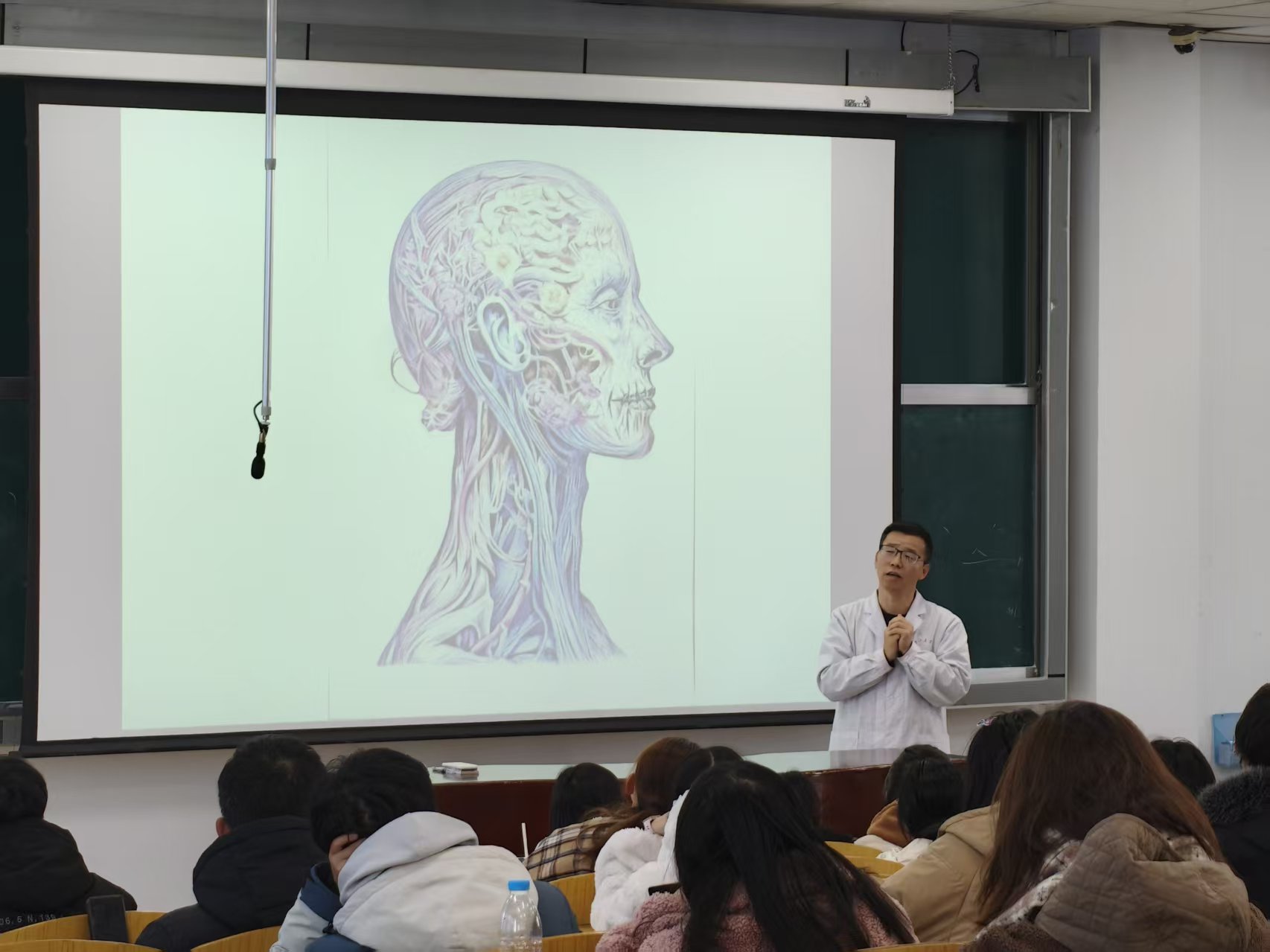 大赛启动以来,得到了各学院的积极响应与广泛动员。为帮助参赛学生更好地把握科学精准与艺术表现之间的平衡,基础医学院解剖教研室孙成老师为有参赛意愿的学生作题为《解剖绘图选拔赛赛前导读》的专题讲座。讲座围绕人体结构的科学呈现、构图与色彩的美学逻辑、绘图材料的运用技巧等内容展开,为同学们后续的创作提供了专业指导与美学启发。