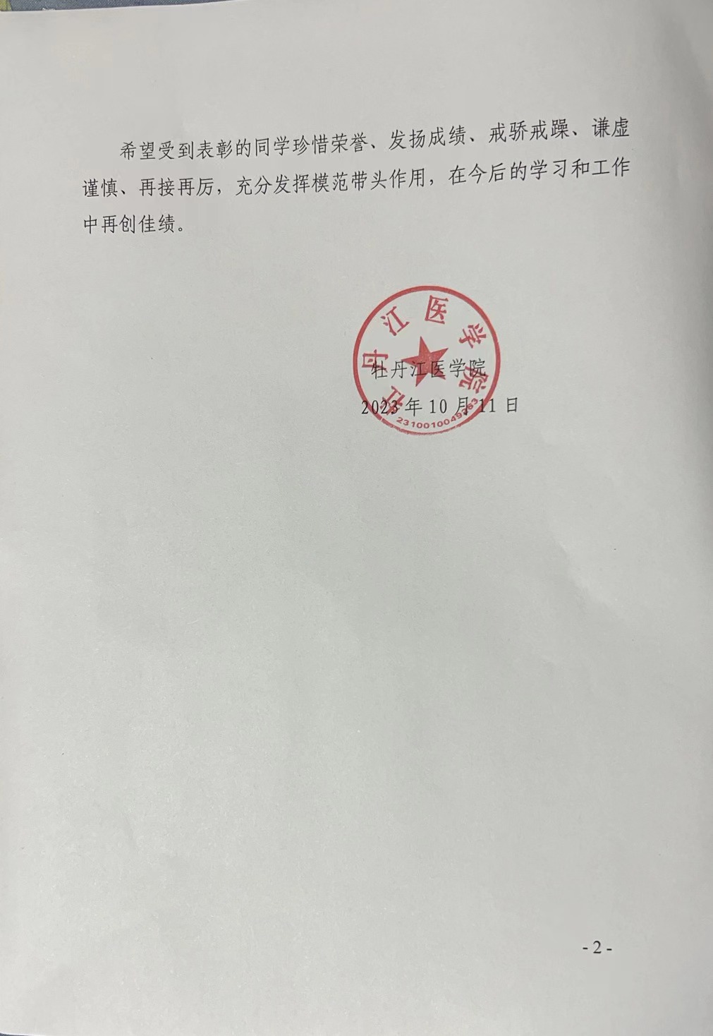 牡丹江医学院2022-2023学年本科生国家奖学金评审公示