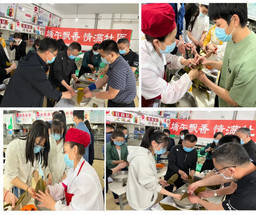 食堂精心准备了糯米、粽叶、豌豆、大枣、红糖等食材,并派出专业厨师为大家示范如何包粽子,通过折粽叶、装米、放馅、定型、扎绳等一系列细节要领,指导在场人员包出好看好吃的粽子。参与此项活动的同学们热情高涨、专注投入,现场呈现出一派温馨祥和的情景。