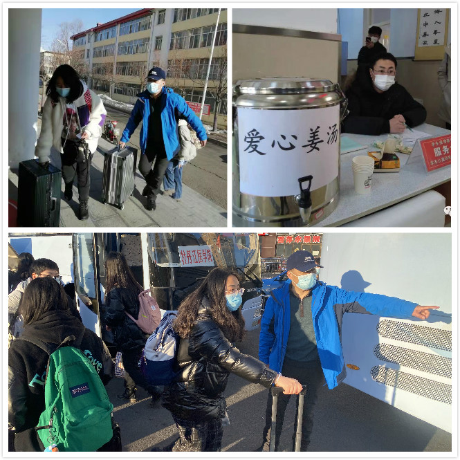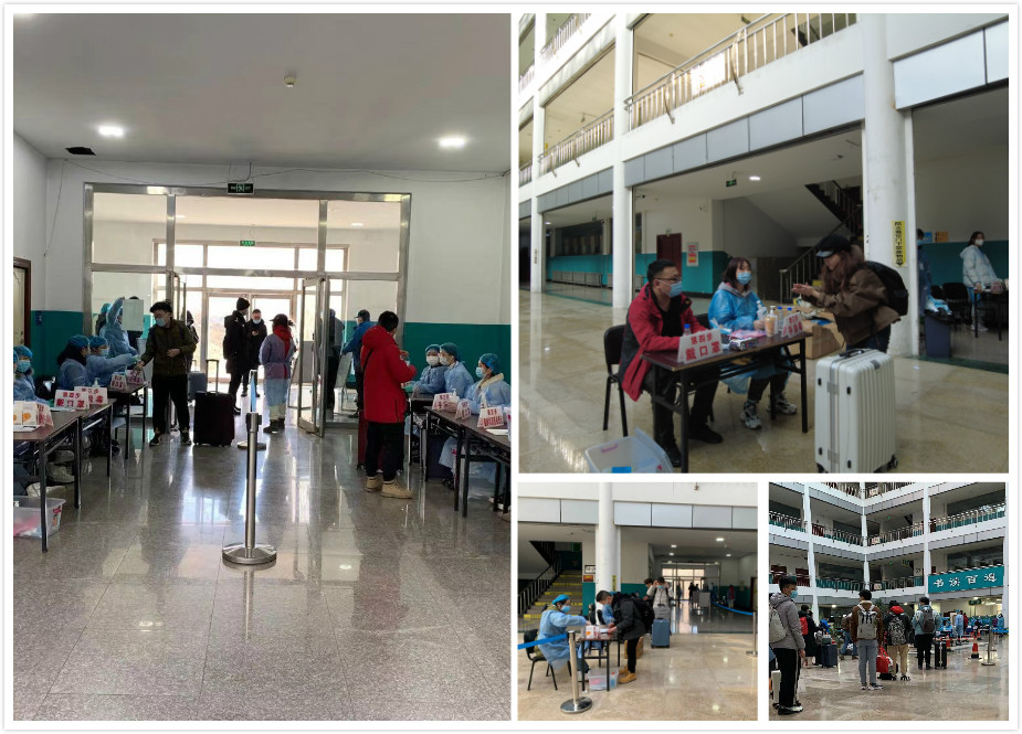 学生工作部、保卫处、医政处、红旗医院核酸检测人员、辅导员和学生志愿者们每天早6:00到达学校图书馆布置疫情防控常态化进校检测流程现场,等待学生的归来。志愿者们帮助同学们提行李、耐心引导同学们入校,返校现场秩序井然、有条不紊。每位返校的同学经过扫码、测温、行李消杀、手部消杀、更换新口罩、填写防疫卡、核酸检测等流程后到公寓办理入住手续。核酸检测流程点志愿者从6:00至22:30轮流工作,认真负责,耐心引导,他们用实际行动诠释着责任与担当。学生工作部在临时隔离区准备了保暖衣物、面包、方便面、开水,学生寝室设置学生疫情防控服务台,为返校学生提供热乎乎的姜汤,以备返校同学的不时之需。特别是因舟车劳顿而身体疲惫的同学,更是给予细致入微的照顾。学生表示,十分感谢老师和志愿者同学热情的照顾,让他们在春寒料峭的季节里感受到来自学校和老师无微不至的关怀。