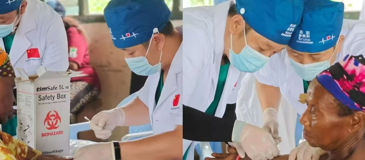 在赤道几内亚涅方市一个偏远乡村的一处低矮破旧的棚屋内,闷热潮湿的空气里弥漫着腐朽的气息。斑驳的土墙上满是大大小小的裂缝,屋顶的铁皮更是锈迹斑斑,时不时发出令人不安的咯吱声。在这狭小阴暗的空间里,成群的蚊虫不知疲倦地飞舞着,嗡嗡声此起彼伏,就像一团挥之不去的阴翳笼罩着整个房间。这时,第34批援赤道几内亚中国医疗队的麻醉医生——来自牡丹江医科大学1998级麻醉专业陈东,正躬下身子,艰难地为当地村民采血,以进行疟原虫检测。只见他们用酒精棉片反复擦拭村民黝黑的手臂,细心寻找细细的血管。汗水顺着额角滴落在衣服上,晕开一片片深色的水渍。