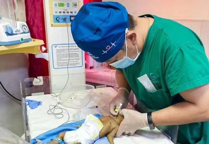 他不禁想起,在国内时,这样的极低体重儿会有专门的新生儿重症监护室,那里配备着超声机、呼吸机、专用穿刺包,还有一群医护人员悉心守护。然而在这里,生命的延续有时只能依赖医生的经验和运气,手中那根细小的针头承载着每一个生命的重量。作为一名麻醉医生所能做的,就是用每一次精准的穿刺、每一次坚定的守护,对抗这份无力,因为每一个生命,无论多么脆弱,都应该拼尽全力去守护。