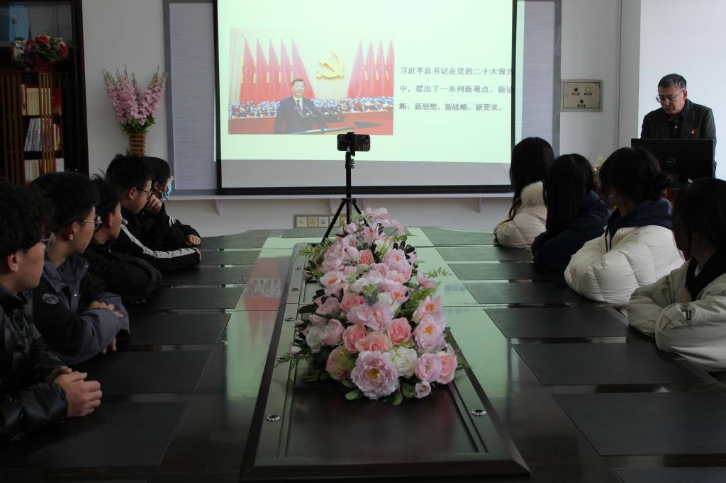 刘晓峰书记结合自身感受和学习心得,紧紧围绕党的二十大报告内容,结合习近平总书记有关重要指示批示精神和党中央关于中国式现代化的决策部署,宣讲党的二十大精神,引导教育大学生全面掌握二十大报告中的新观点、新论断、新思想。他强调,要通过不间断的学习,提高思想认识,深刻领会党的二十大精神的重大意义;要把握精神实质,准确理解党的二十大精神的深刻内涵;要牢记初心使命,树立家国情怀,为中国式现代化新篇章护航添彩。
