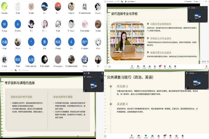 本次分享会为准备复试和考研的同学们提供了切实可行的指导,帮助大家更清晰地认识考研形势,树立科学的备考观念。与会学生纷纷表示,此次讲座让自己对考研有了更清晰的认识,备考方向也更加明确,有信心在考研的道路上勇往直前 。