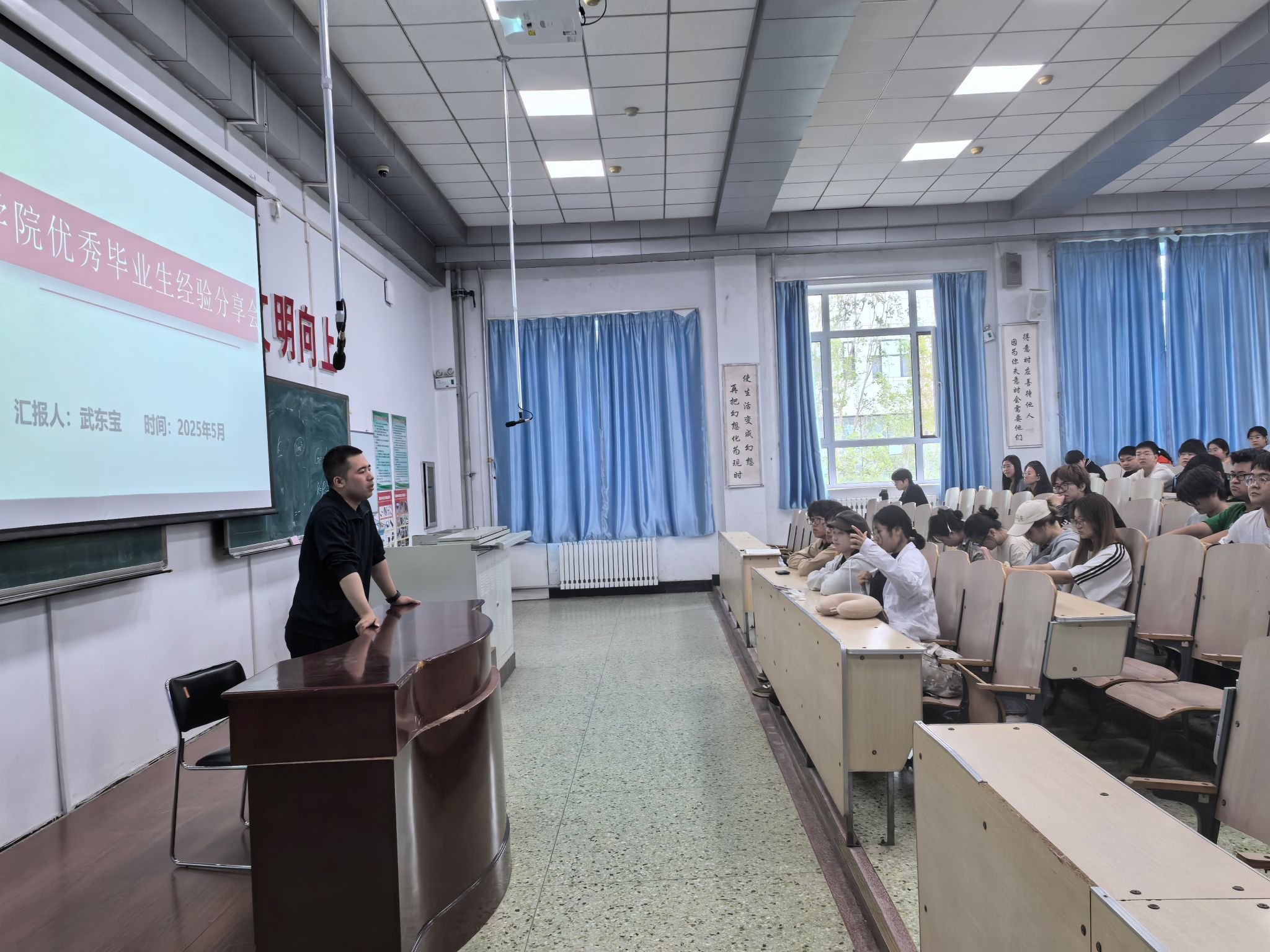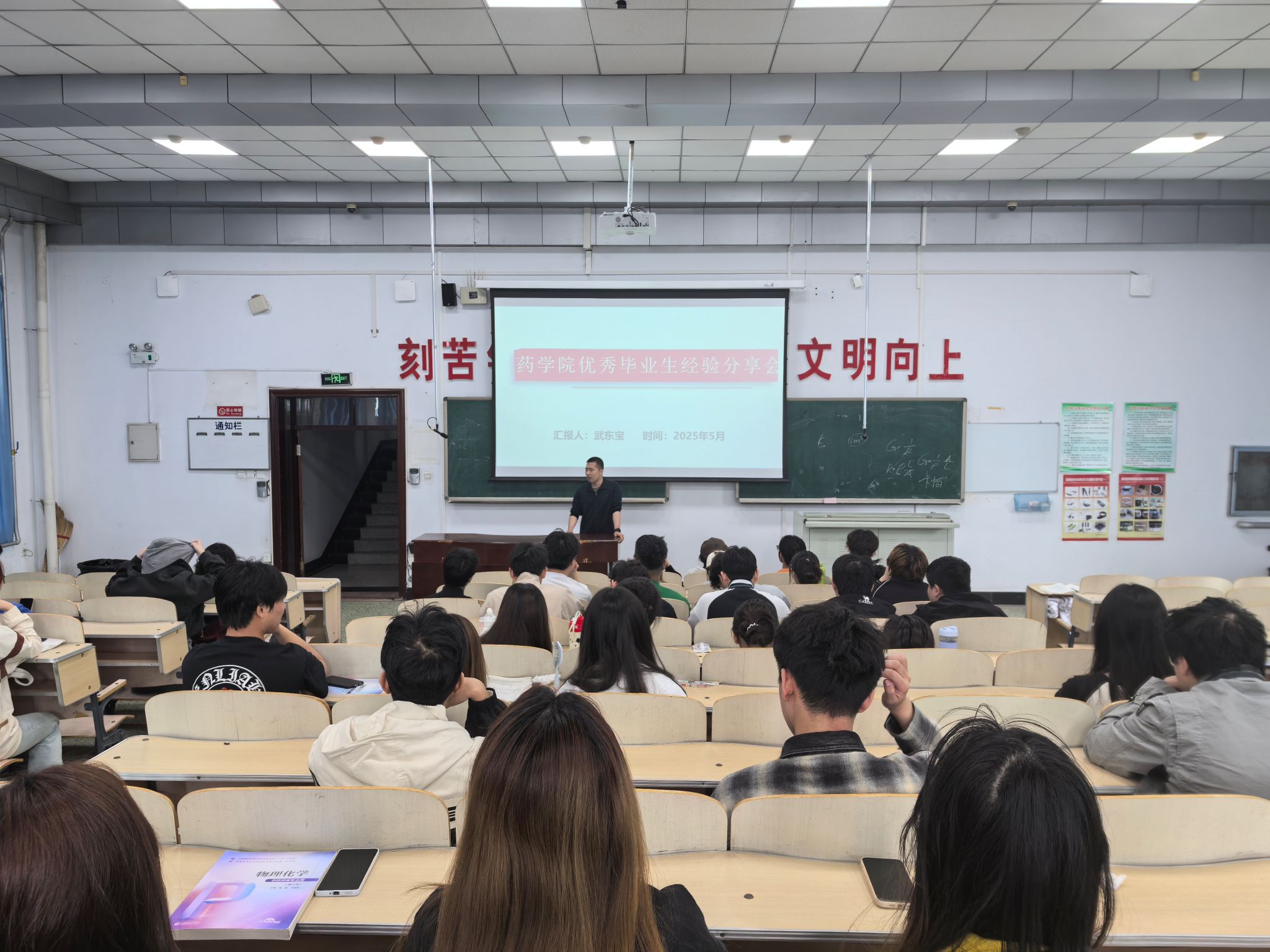 为充分发挥优秀毕业生的榜样引领作用,助力在校生明确职业规划与发展方向,5月21日上午,药学院在阶梯九教室举办了“青春领航·筑梦未来”优秀毕业生经验分享会。活动特邀2024届毕业生武东宝作为主讲嘉宾进行交流,吸引了200余名学生积极参与,现场氛围热烈。