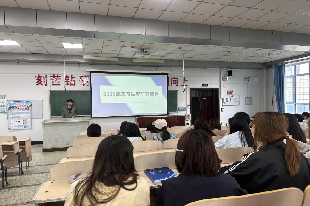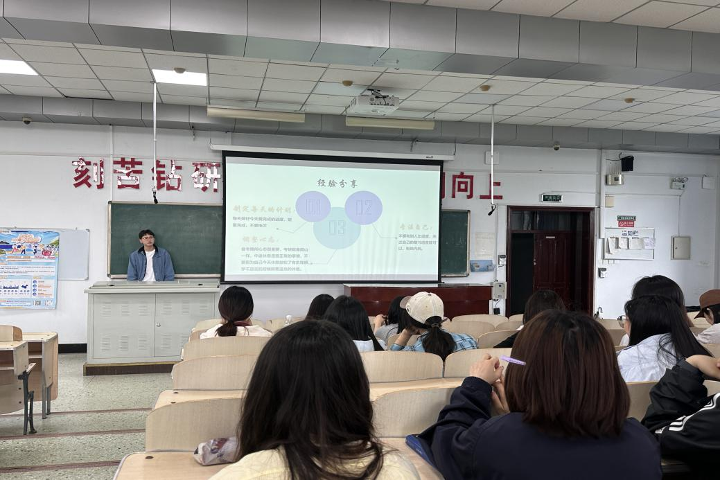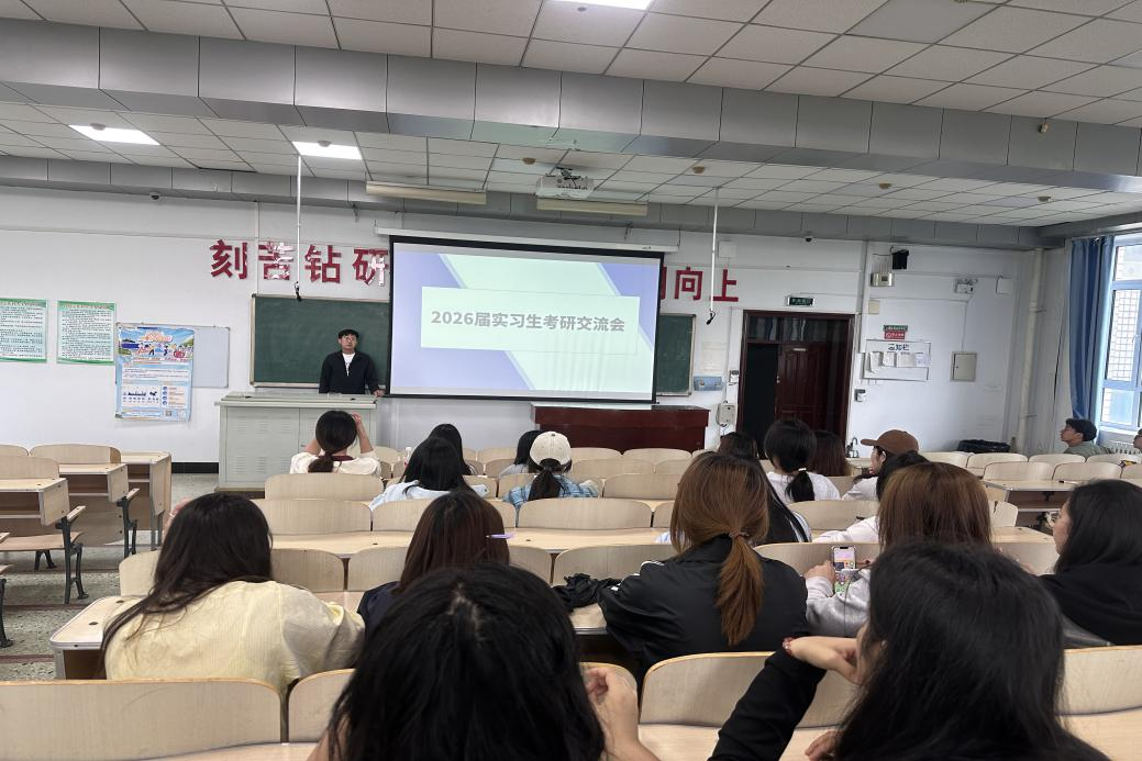 为帮助 2026 届实习生明晰考研方向、掌握备考技巧,6 月 10 日,在药学楼阶梯八教室成功举办 2026 届实习生考研经验交流会。药学院实习就业科副科长周成铭主持,此次活动邀请到今年成功考上哈尔滨医科大学的刘芮琪学长、大连医科大学的曾文豪学长、沈阳药科大学的柳露茜学姐、遵义医科大学的刘庆荣学长和牡丹江医科大学的张帅国学长,为同学们带来一场干货满满的考研经验分享盛宴。