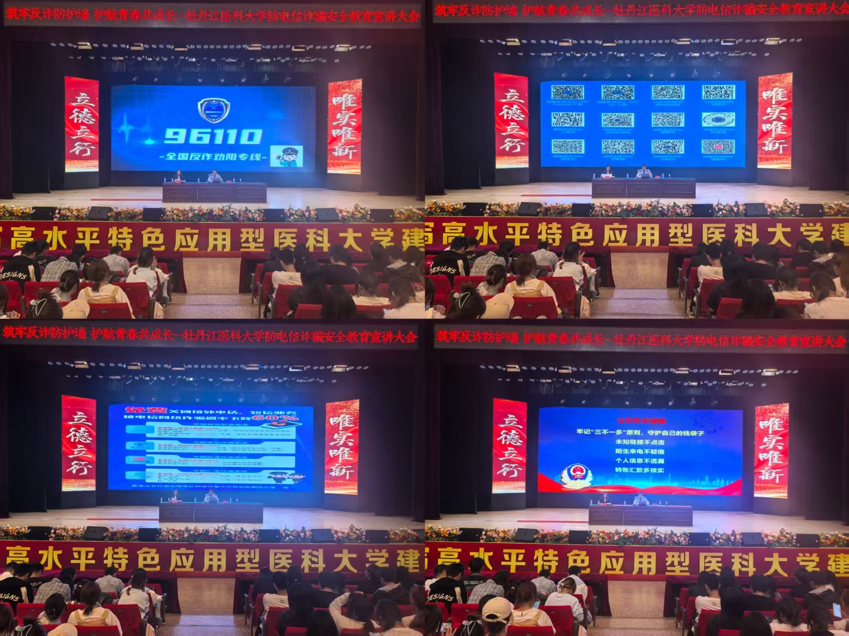 活动首先邀请牡丹江市公安局爱民分局向阳派出所副所长张顺新警官为全体学生做主题报告,张警官依托丰富实战经验,结合触目惊心的真实案例,系统剖析了刷单返利、冒充公检法、虚假贷款、网络交友等在学生群体中高发的诈骗类型,揭露其惯用伎俩,并重点传授“不轻信、不转账、不泄露”的防诈基本原则,为师生提供清晰行动指南。