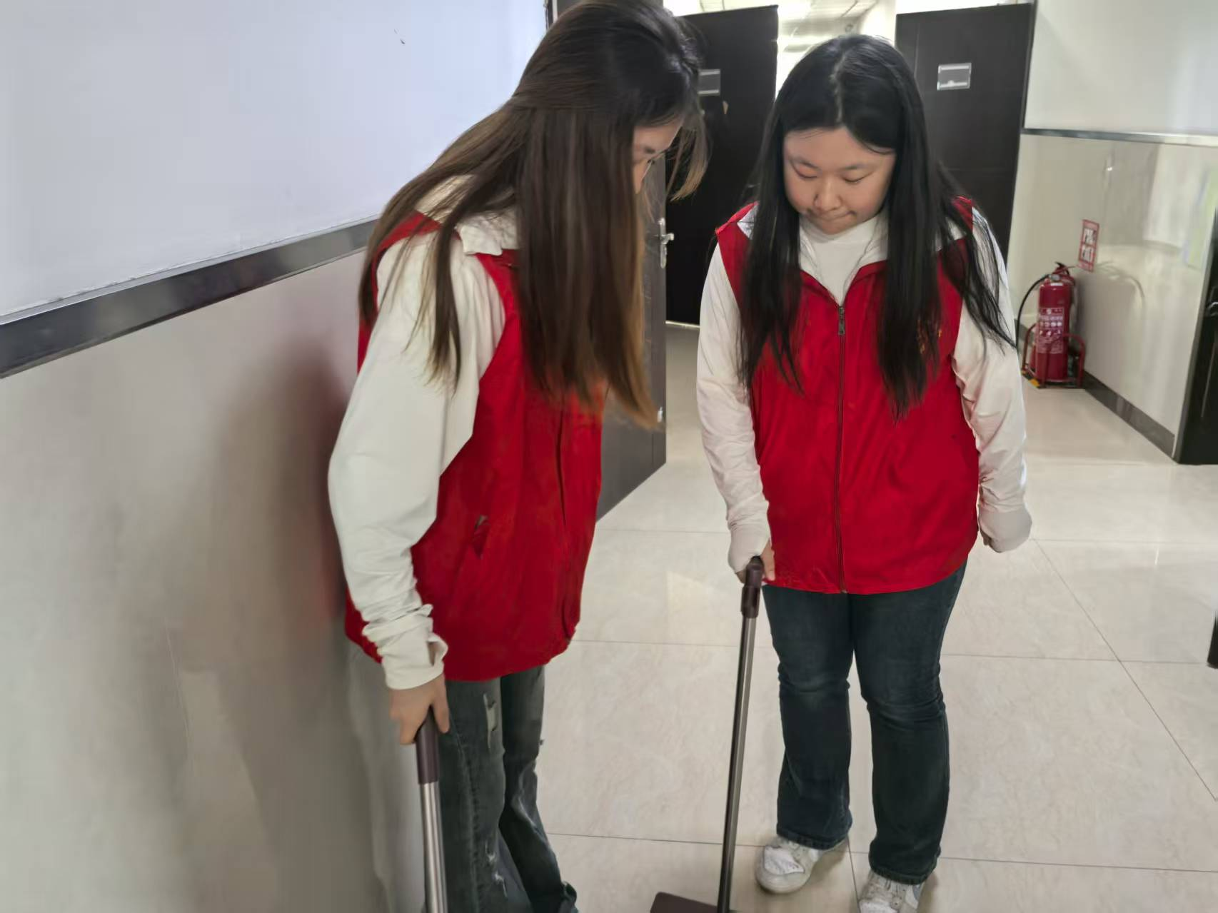 除了表面清洁,寝室物品的规整与检查也同步进行。志愿者们将每间寝室的床铺逐一检查,确保床板稳固、床架无松动;将书桌、衣柜擦拭干净后,还会打开抽屉与柜门通风,避免异味残留;对于寝室配备的椅子,志愿者们会轻轻晃动,检查是否存在螺丝松动的情况,若发现问题便及时标记,交由后勤维修人员处理。
