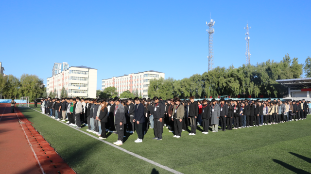 全场师生低头默哀一分钟,向在九一八事变及抗日战争中牺牲的先烈们致以最沉痛的哀悼。这一分钟,时间仿佛凝固,每个人心中都涌动着对历史的敬畏和对先烈的缅怀。