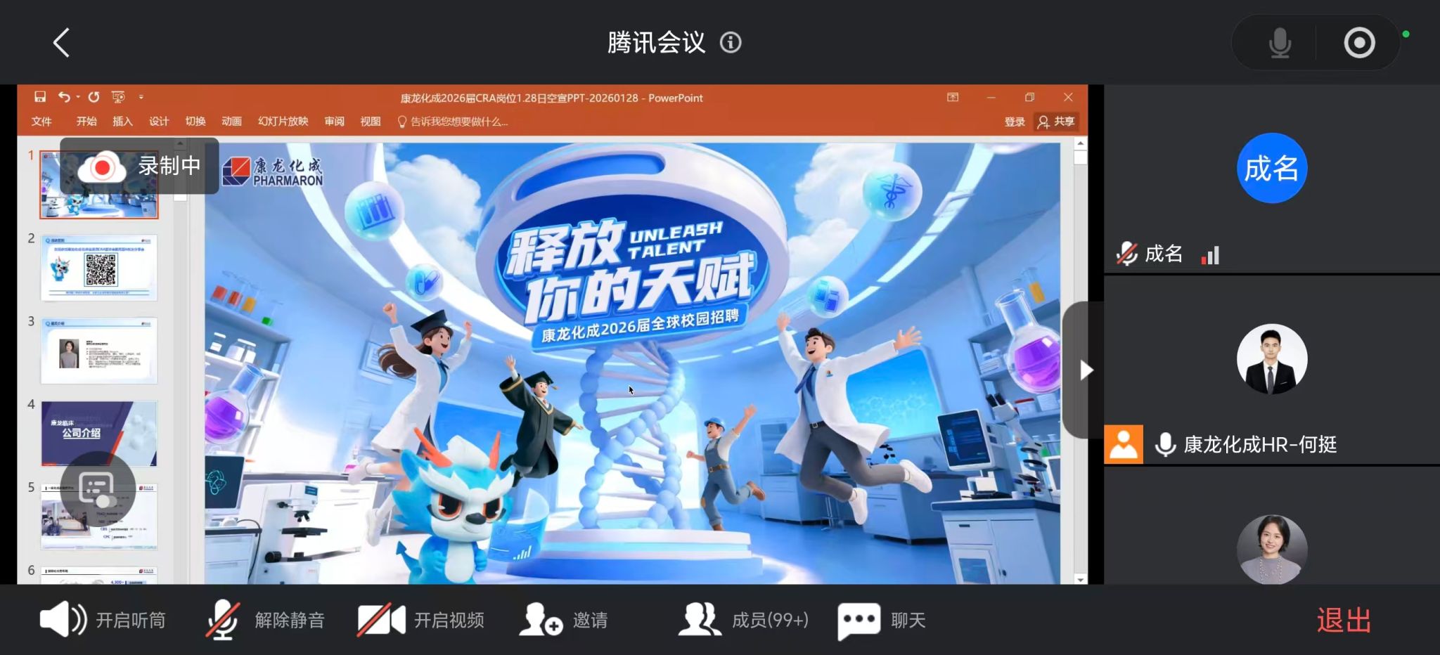 为精准对接2026届毕业生就业需求,搭建优质校企沟通桥梁,帮助学子明晰医药行业前沿动态与职业发展路径,1月28日,药学院特邀北京康龙化成新药技术股份有限公司举办线上宣讲会。本次活动吸引了药学院各专业应届毕业生及部分低年级学生参与,通过“企业推介+岗位解读+互动答疑”的形式,为校企双方搭建了高效对接的数字化平台。