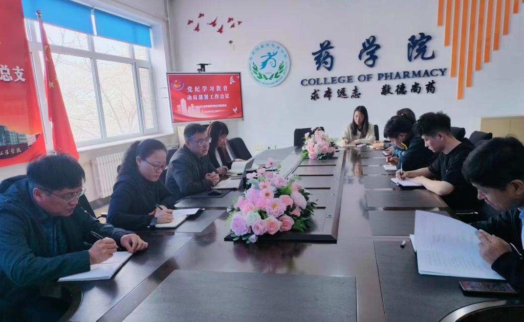 4月15日,药学院党总支召开专题(扩大)会议部署推进党纪学习教育工作,会议“第一议题”学习了习近平总书记关于党纪学习教育重要指示精神,传达学习了学校党委《关于在全校开展党纪学习教育的实施方案》,审议通过《药学院党总支关于开展党纪学习教育的实施方案》,对药学院党纪学习教育工作作出具体安排。