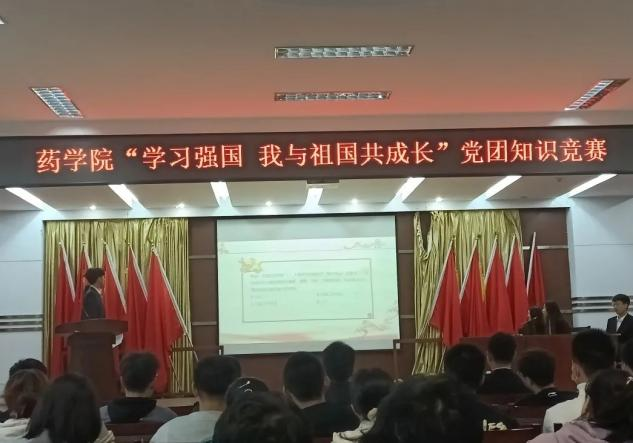 百年恰风华,世纪正青春。为加强开展党史学习教育,进一步浓厚党史教育学习氛围,药学院学生会组织全体预备党员于2021年10月27日在基础楼多功能厅举办药学院"学校强国,我与祖国共成长"党史知识竞赛。