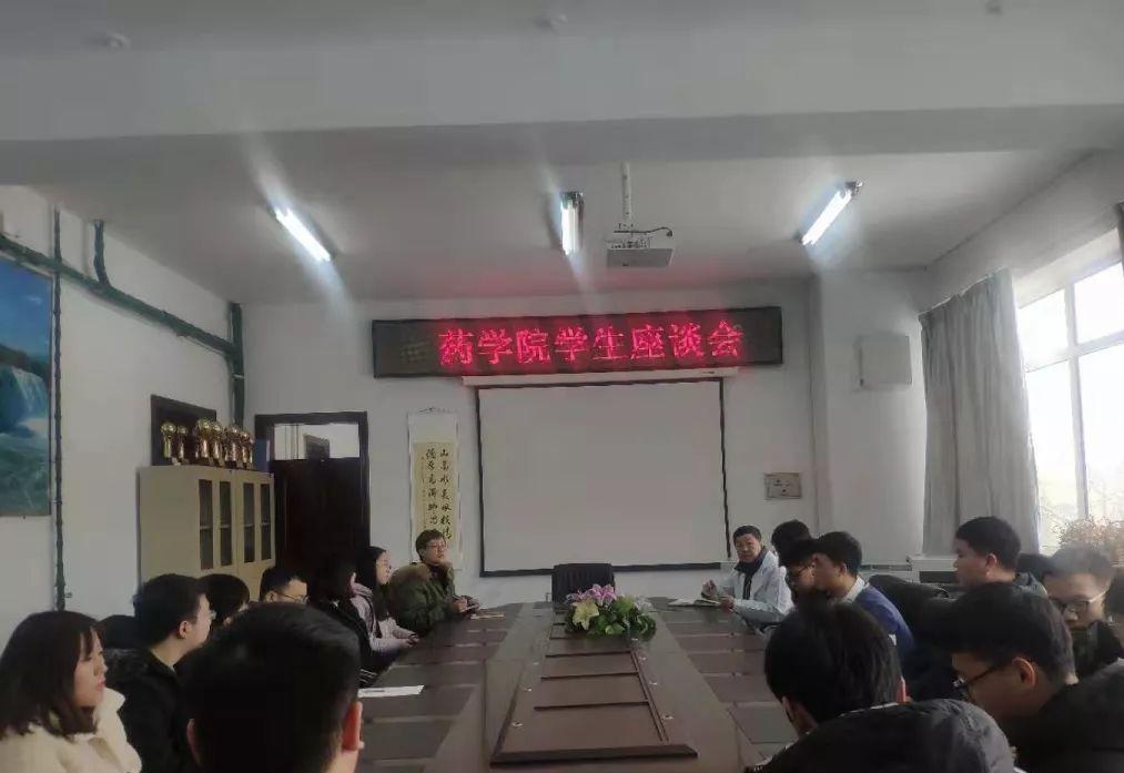 12月19日下午,药学院师生在药学楼四楼会议室召开学生代表座谈会。学院书记王羽、辅导员与30余名学生代表进行座谈。