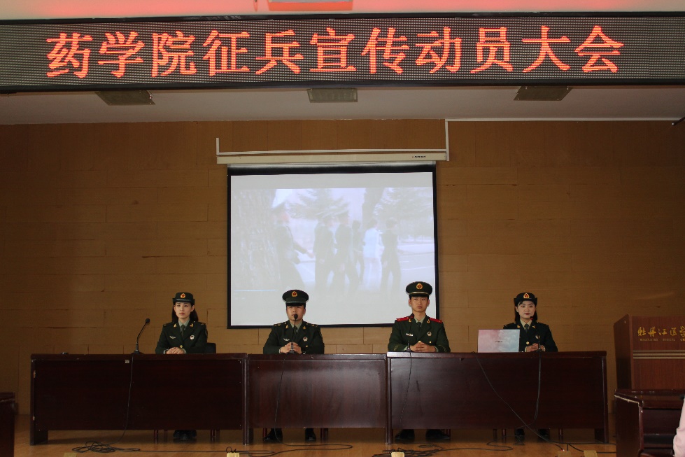 为响应国家号召,鼓励大学生积极应征入伍,5月18日中午,药学院联合校武装部于图书馆四楼报告厅举办征兵宣传动员大会。校武装部选派四名优秀退役大学生代表与140余名在校男生在现场进行互动,其他在校生线上参会,活动参与人数达六百余人。
