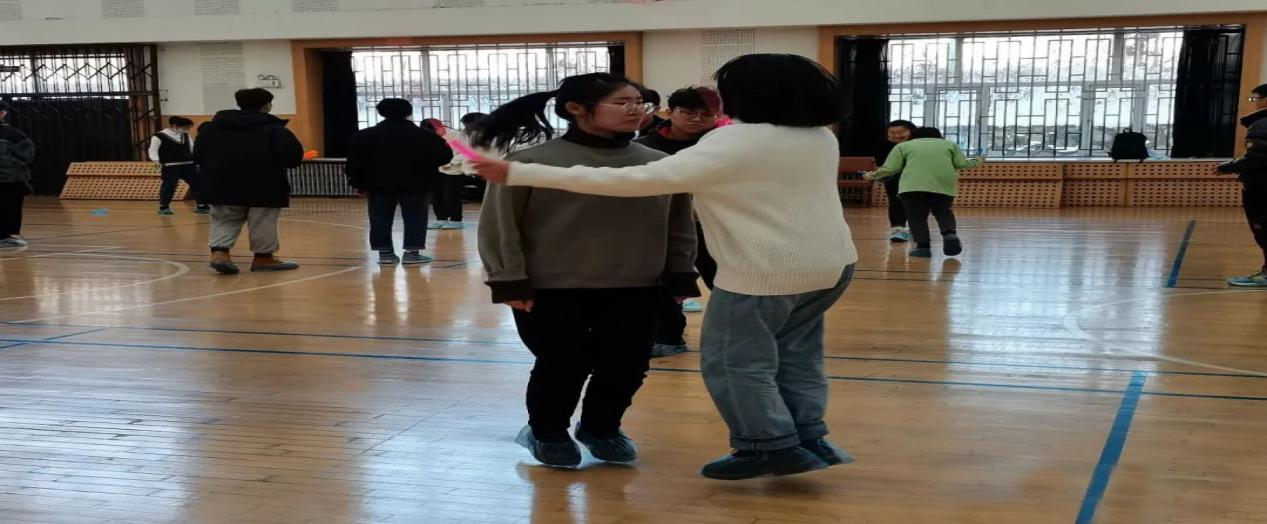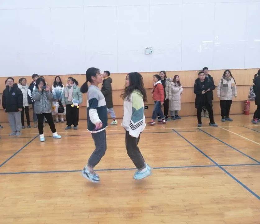 参赛的同学在场地上跳跃着双脚,挥动着双臂。脚尖与地面的摩擦,谱出一曲动听的乐章,手中的跳绳在空中舞出一条优美的弧线,场下的同学都为他们吶喊加油。