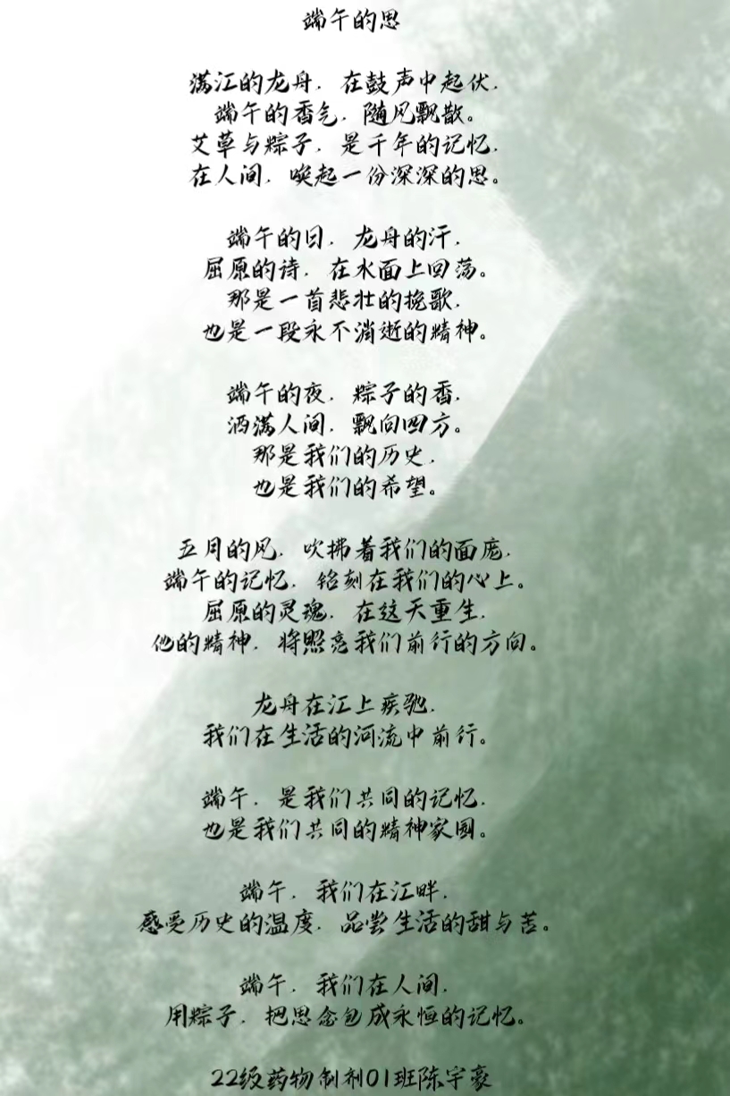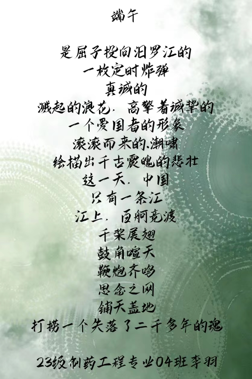 本次端午主题诗词征集活动不仅为全院学生们提供了一个展示才华的平台,也让大家在创作过程中更加深入地了解和感受了端午节的文化内涵,进一步激发了大家对中华优秀传统文化的热爱和传承意识。