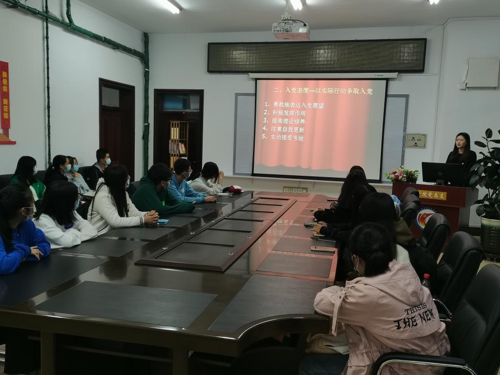 随后学生党员杨若男为大家讲解了入党的基本流程和要求等。同时希望同学们要自觉学习政治理论,熟悉党的基本知识,端正入党动机,积极向党组织靠拢,做到信念坚定、对党忠诚。最后,讲解了发展党员的工作方针和相关条件要求,强调了入党申请书的书写规范,并鼓励同学们积极提交,希望大家能早日加入中国共产党,成为一名光荣的共产党员。