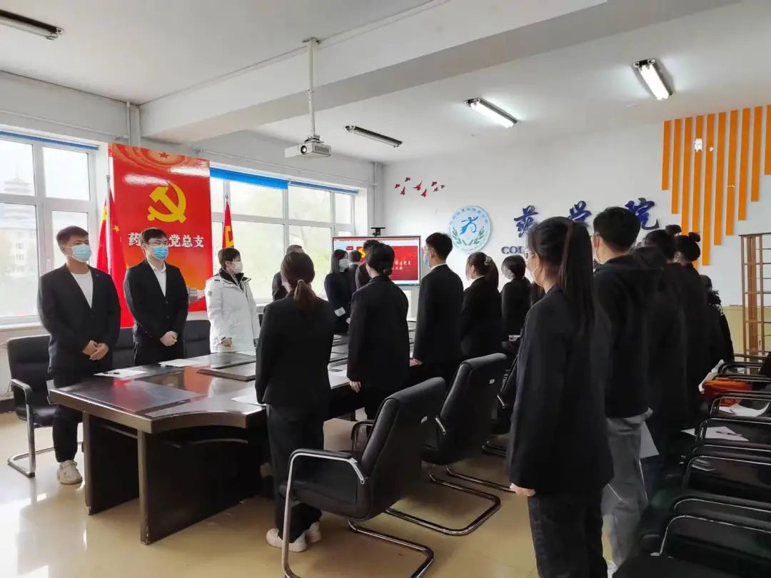 为进一步发挥党建引领作用,积极探索学生党建工作的新思路、新途径,引导广大学生党员在工作中当先锋、作表率,以实际行动践行初心使命,以积极向上的精神风貌迎接党的二十大胜利召开,药学院党总支学生党支部于2022年10月14日成立“青苗”学生党员先锋示范队。药学院党总支书记刘晓峰、副处级辅导员石杰、学生党支部书记闫水华、辅导员周成铭及全体在校学生党员参会。会议由闫水华主持。