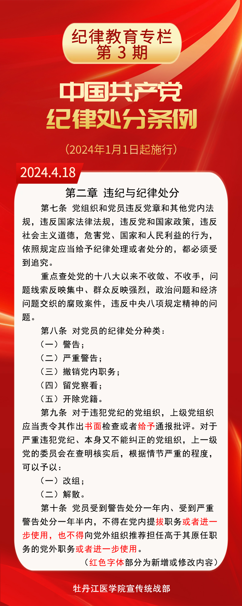 【纪律教育专栏】《中国共产党纪律处分条例》修订条文对照学习(第4期)