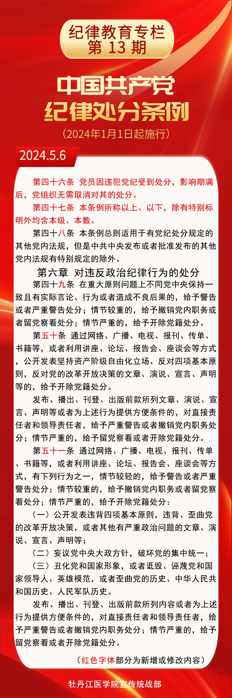 【纪律教育专栏】《中国共产党纪律处分条例》修订条文对照学习(第13期)